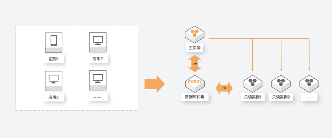 -1,表示不自动切换1,默认值,表示自动切换2,基于MySQL主从同步的状态决定是否切换3,基于MySQL galary cluster的切换机制4).阿里云-RDS数据库代理(以RDS PG为例)数据库代理是阿里云数据库RDS提供的一款安全、稳定、高性能,对应用完全透明的数据库中间层服务。数据库代理是位于数据库服务端和应用服务端之间的网络代理服务,代理服务端代替应用服务端数据库发送和接受所有数据库请求,进而可以在代理服务层上实现比如读写分离、连接池、端对端加密、防闪断等附加功能。通过数据库代理用户只需要通过一个链接地址即可实现读写分离架构,读写属性和只读属性的多样化选择满足了不同业务场景。