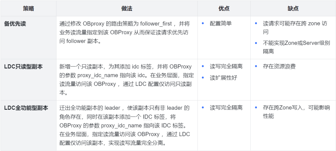 通过应用侧为执行的 SQL 添加 SQL Hint 来显性开启弱一致性读就可以实现基于注释的读写分离功能,同时也衍生出如下三种常用的读写分离策略: