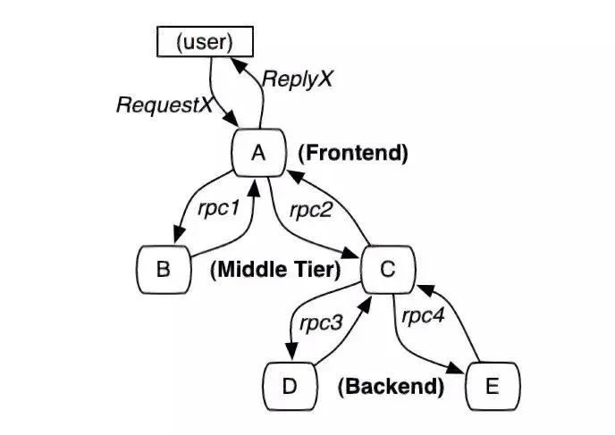 图2 一次典型的请求全过程(摘自《Dapper》)