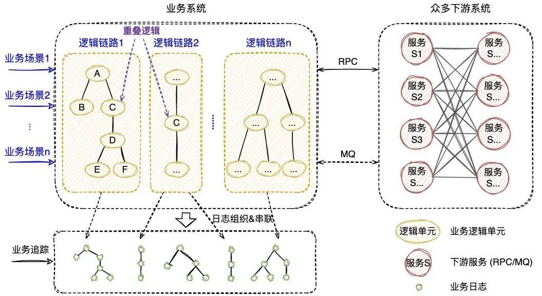 新方案需要回答两个关键问题:如何高效组织业务日志,以及如何动态串联业务日志。下文将逐一进行回答。