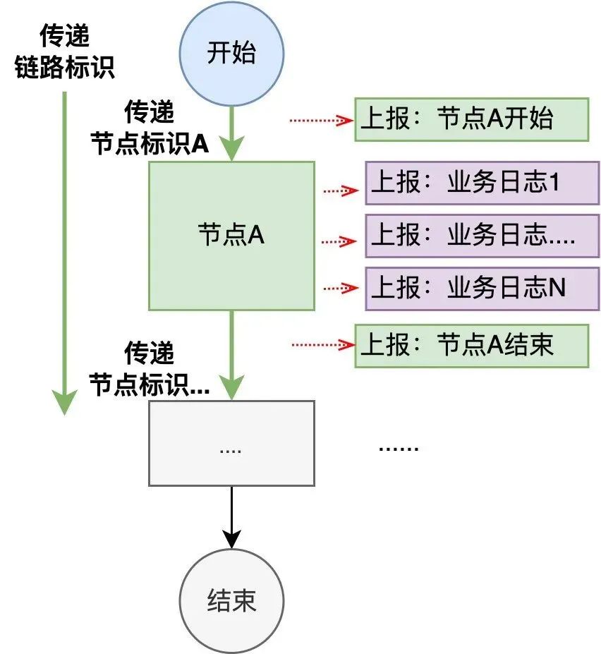 业务标识:赋予链路业务含义,例如“用户id”、“活动id”等等。场景标识:赋予链路场景含义,例如当前场景是“逻辑链路1”。执行标识:赋予链路执行含义,例如只涉及单次调用时,可以直接选择“traceId”;涉及多次调用时则,根据业务逻辑选取多次调用相同的“公共id”。节点唯一标识 = 链路唯一标识 + 节点名称 (两个标识共同决定“某个业务场景下的某次执行中的某个逻辑节点”)