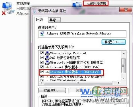 2、接着找到连接网络的连接方式,假如你使用的时地连是有线连接的免费信息发布网话就选择本地连接,使用的候显是无线连接的话就选择“无线网络连接”,右击他们选择“属性”,示本在属性窗口中找到“Internet协议版本4”,接没点击属性按钮;