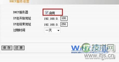 4、登录到路由器界面,查看一下是否开启了DHCP服务器,假如没有开启的话,我们就要勾选启用DHCP服务器并重启一下路由器试试。