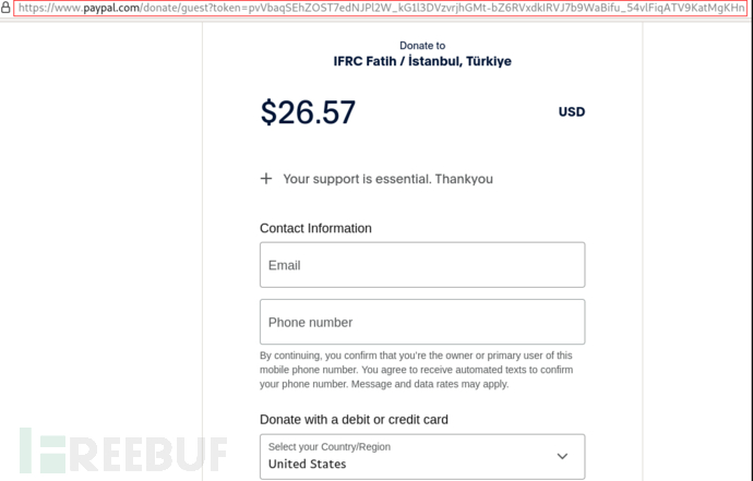 另一个网页help-turkey.org也是虚假创建的,源码下载用于收集捐款。当点击 "捐款 "按钮后,用户会被跳转到一个可以通过PayPal完成捐款的页面。通过这种方法,骗子可以成功地将钱转入他们自己的账户。