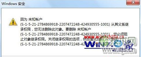 3、假如该未知账户对上一级文件夹赋予了权限,点击删除后会看到下面的云服务器提供商提示,这时候需要到上一级的文件夹属性中执行上面的删除未知账户步骤即可。