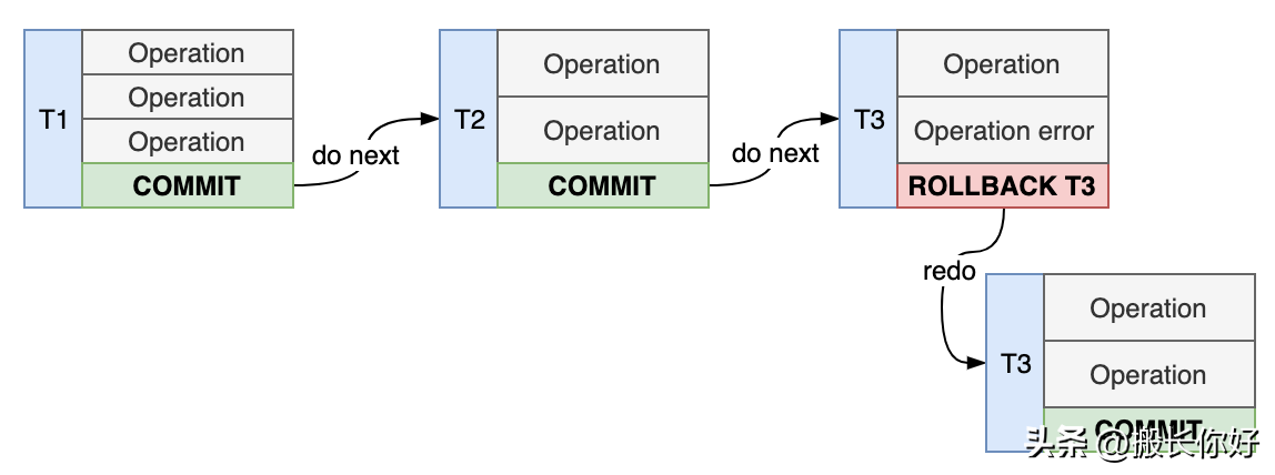 链事务(Chained Transaction)链事务是一种保存点事务的变种,两者的最大区别是,带保存点的事务可以回滚到较早前的任意保存点,而链式事务只能回滚到最近一个保存点;带保存点的事务因为需要回滚到任意保存点,IT技术网固其事务执行期间所占用的资源是不会被释放的,而链事务则在执行完成当前节点后会释放掉不需要的资源,并将下一个节点需要的资源隐士传递下去。链事务可以参考Flink流式计算的Checkpoint机制,两者非常的相似。