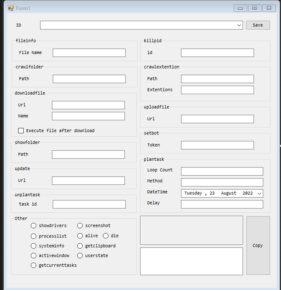 攻击者可以通过构建和混淆命令的 UI 工具生成命令,然后使用以下三种方法之一将它们传输到恶意软件: