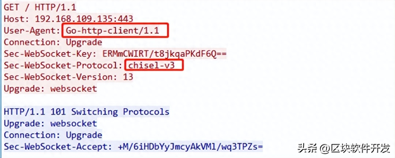 WebSocket协议是Http协议的补充,相较于Http协议,WebSocekt实现了长连接、全双工通信通道,具有更高效的通信效率。chisel隧道中的WebSocket协议是基于”github.com/gorilla/websocket”包实现的。