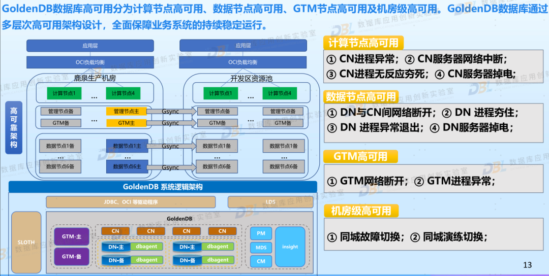 高可用是数据库的基础能力之一,可以说是老生常谈,但有不能忽略。特别是在企业的核心业务替换中,高可用是最不能被忽略的评估项。下面几图就是厂商谈到的自己全方位的高可用能力。