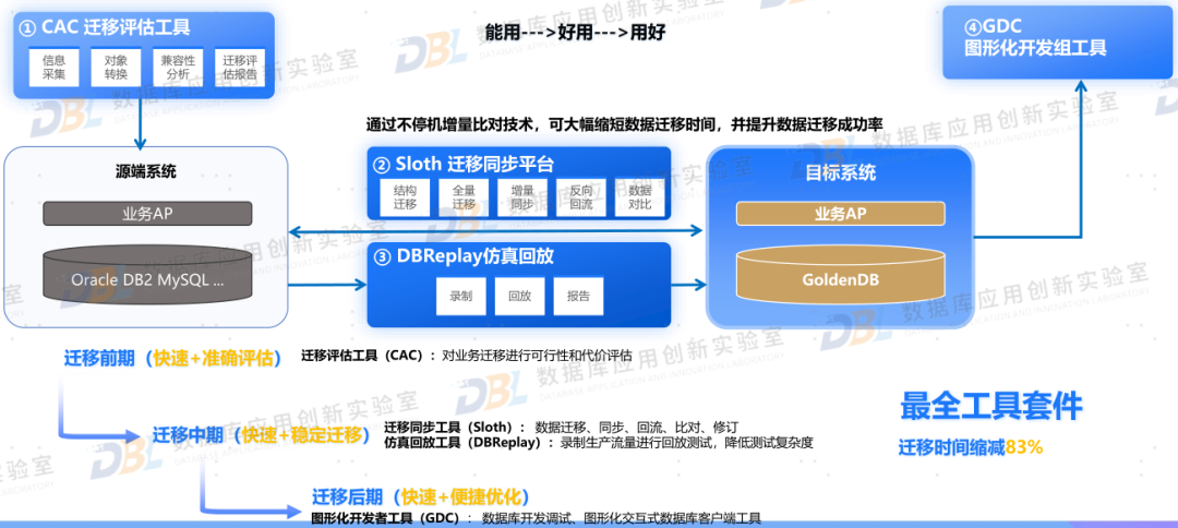 随着国产数据库使用不断深化,厂商已经从独立产品的构建,演变为体系化的产品布局。用户想使用好数据库,不能仅仅满足于提供一个单品,更要更为强调体系、乃至生态的作用。下图正是厂商构建的数据库全生命周期的产品家族,满足从选型评估、迁移同步、开发优化、运维管理、诊断排障等,覆盖全场景的产品系列。同时也有很多第三方的厂商也发力于此,提供满足多种数据库的此类能力。
