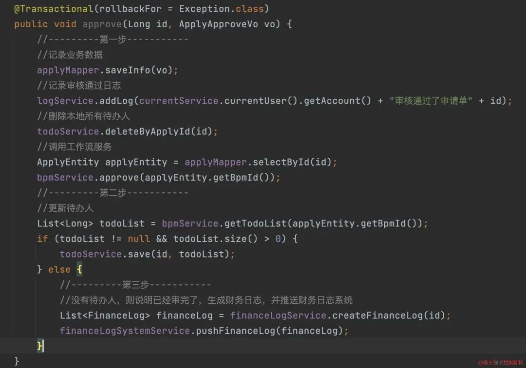 这是一个策略模式接口,每个小事务就封装一个独立的实现类。