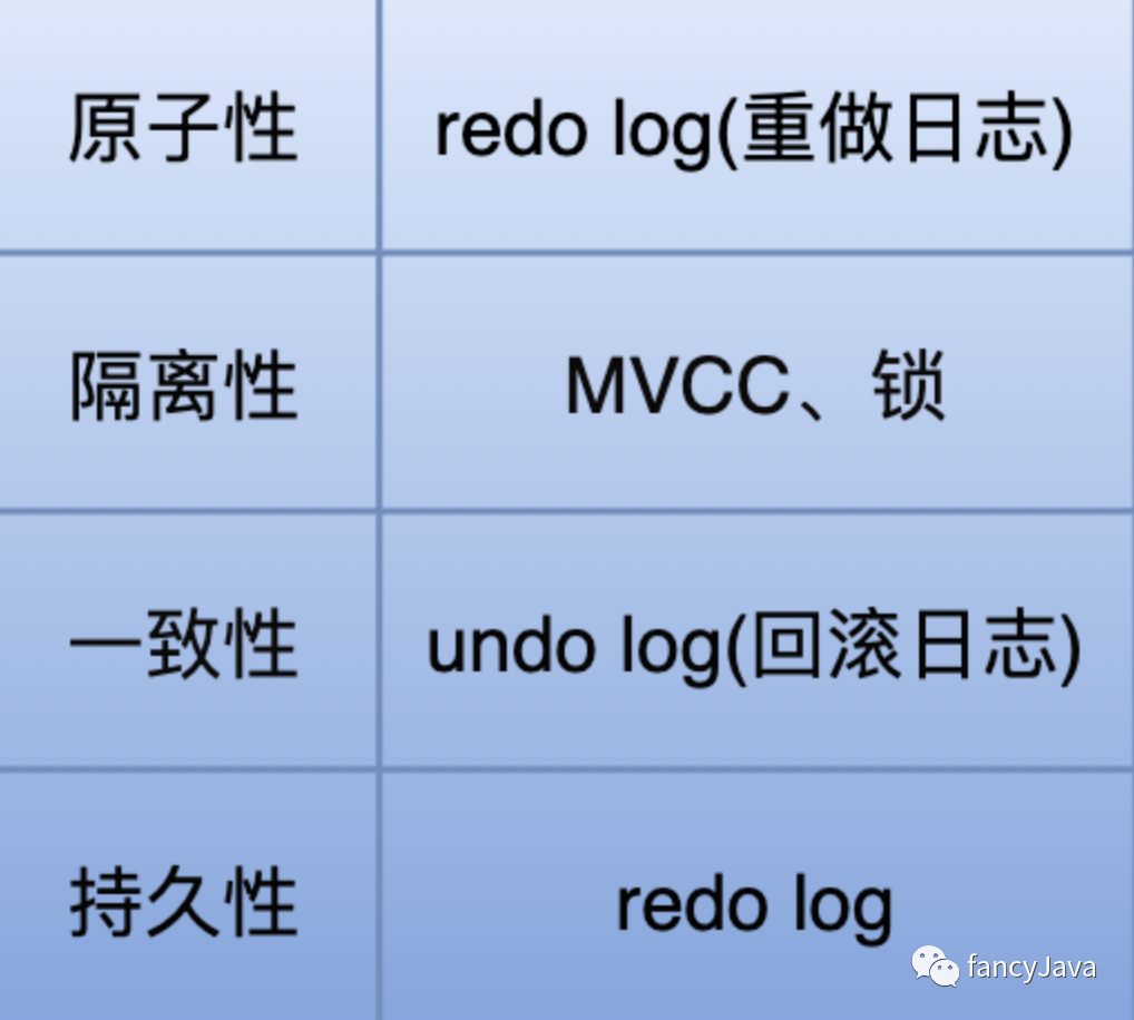 那么InnoDB如何去实现这四个特性呢?不同的特性其实有不同的实现方式:
