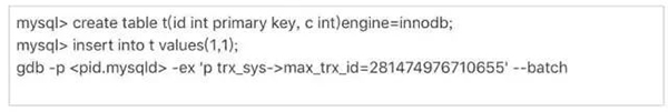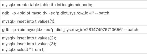 验证该结论:通过gdb修改系统的自增row_id。用gdb是为了便于复现问题,只能在测试环境使用。