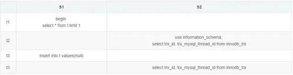 +-----------------+---------------------+| trx_id | trx_mysql_thread_id |+-----------------+---------------------+| 421972504382792 | 70 |+-----------------+---------------------+1 row in set (0.00 sec)
