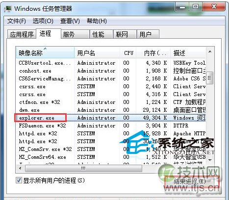 2、反应方法在任务管理器的因及进程界面,列表中找到 Explorer.exe,统点选择后结束进程(这时屏幕会消失);