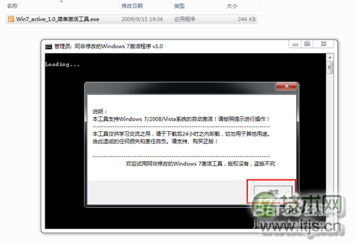 运行激活工具。活工首先看到工具的使用版权声明,这里是统激图感谢工具制作人员哈。然后点击“确定”