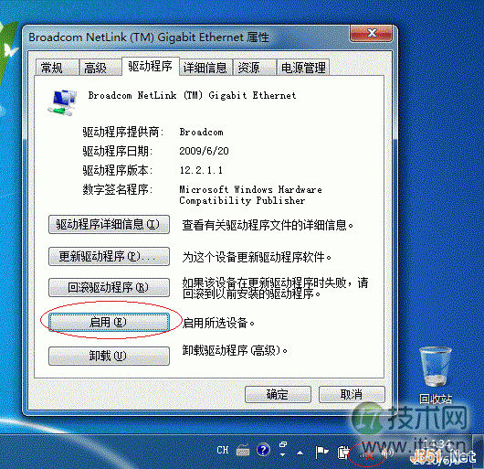 5. 接着,读者可以发现原来的【禁用】按钮变成了【启用】,而且【网络】图标也出现了一个红叉,点击【启用】,继续下一步: