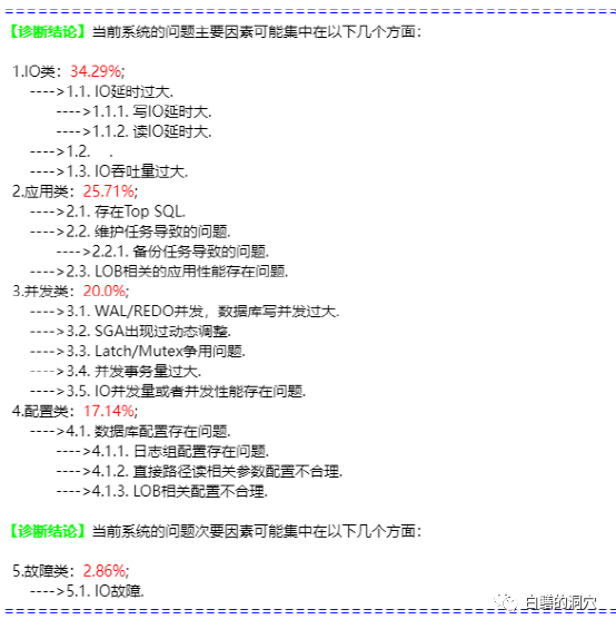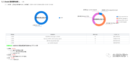 因此当时的智能诊断的分析结果中,IO延时的问题被排在第一位,而智能诊断工具根据一些其他的蛛丝马迹,也发现了其中可能存在备份任务的问题。不过如果看这个结果,IO延时可能是主因,而实际上备份作业引发了IO问题,是问题的主因。