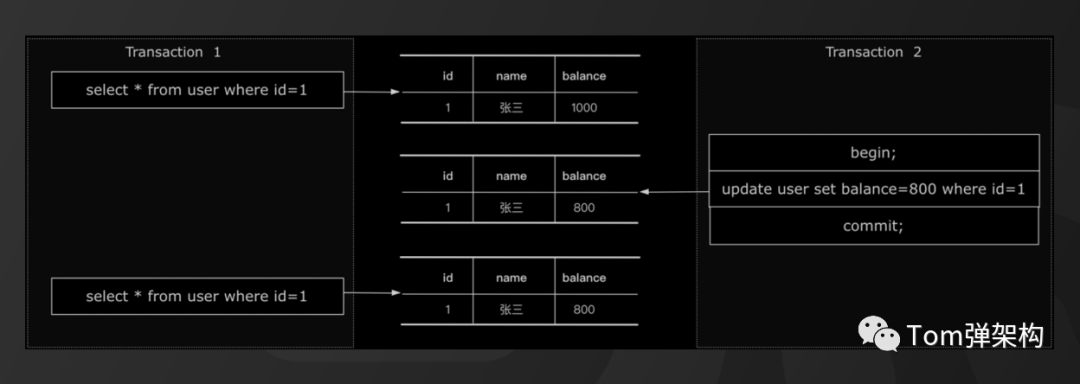 假设有两个事务T1/T2同时执行,事务T1在不同的时刻读取同一行数据的时候结果可能不一样,从而导致不可重复读的问题。
