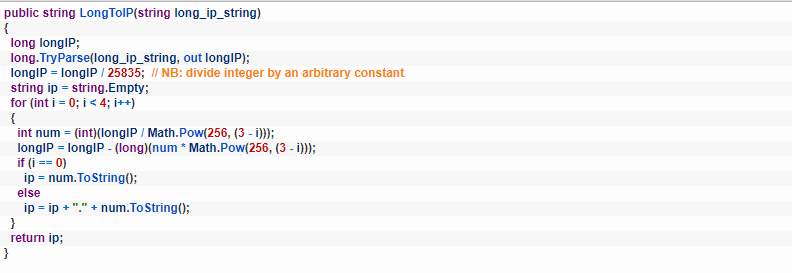 3. IP地址以整数形式获得,然后在转换之前将其除以硬编码常量;