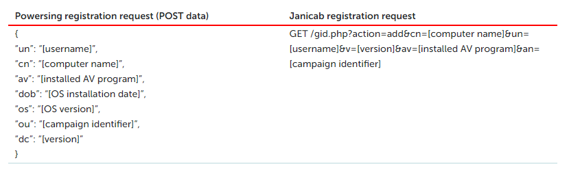 Janicab的最新版本(85ed6ab8f60087e80ab3ff87c15b1174)也涉及网络流量,让人联想到Powersing,尤其是当恶意软件向其C&C服务器注册时: