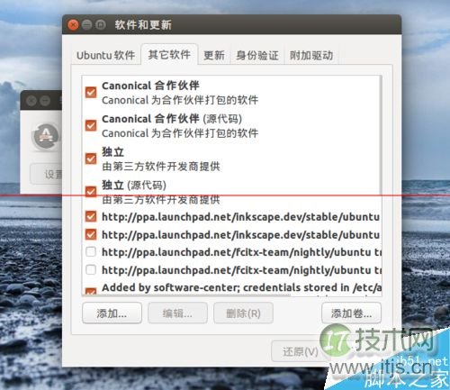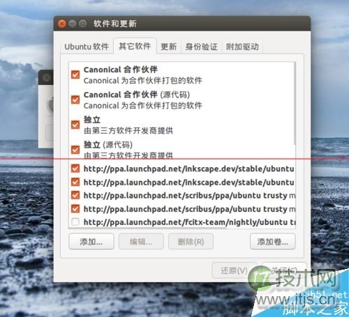 5、软件源添加后要检查一下所添加的软件源前面是否打了“√”,假如没打对勾的话是不会启用软件源的。