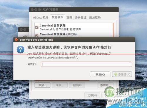 3、点击下方的“添加”按钮,接着就弹出一个添加软件源的对话框。