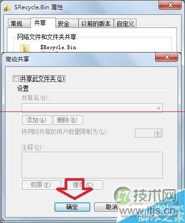 10、取消 共享此文件夹 选中对勾→确定