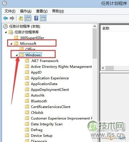 3、接下来,点击“任务计划程序库—Micordoft—Windows”进入查找相关的设置项目。