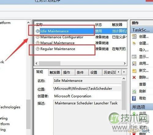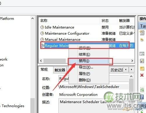 5、按照图片中方框圈中的选项,记得是两个设置项目,然后击右键选择”禁用“,记得将这两个全部禁用哦,b2b信息网最后,我们就彻底的关闭了Windows的自动维护啦,好了,小伙伴们赶紧试试吧。