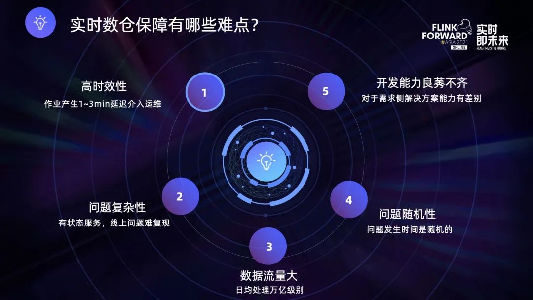 高时效性。相比于离线的执行时间,实时情况下,延迟分钟级就要介入运维,对时效性要求很高。复杂性。主要体现在两个方面:一方面数据不是导入即可查,数据逻辑验证的难度更高;另外一方面,实时大多是有状态,服务发生问题的时候状态不一定能够被完整保存,会存在很多无法复现的 bug。数据流量大。整体的 QPS 比较高,入口流量级别在亿级。问题随机性。实时数仓发生问题的时间点更加随机,没有规律可循。开发能力良莠不齐。如何保证通用场景的开发方案统一,防止因开发方案不同而产生不可控的问题。