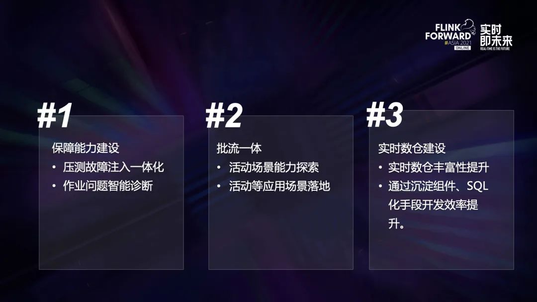 第一,保障能力建设。针对压测和故障注入形成标准化剧本预案,预案执行通过平台能力自动化操作。压测之后,能够对问题进行智能诊断,将过往的一些专家经验进行沉淀。第二,批流一体。过往的活动应用场景过程中,批和流是完全割裂的两套体系,我们在一些场景下做了流批一体的实践,并且正在推动整体平台化建设,通过统一 SQL 的方式提升整体开发效率,并且机器错峰使用可以减少作业压力。第三,实时数仓建设。通过丰富实时数仓内容层面,以及开发组件的沉淀和 SQL 化的手段,达成开发效率的提升,最终达到降本提效的目的。随机阅读