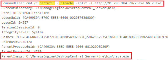 为了进一步验证我们的理论,我们将从受影响的Desktop Central服务器收集的信息与已发布的POC进行了比较,确定攻击者可能利用了CVE-2020-10189漏洞在此易受攻击的系统上运行代码。