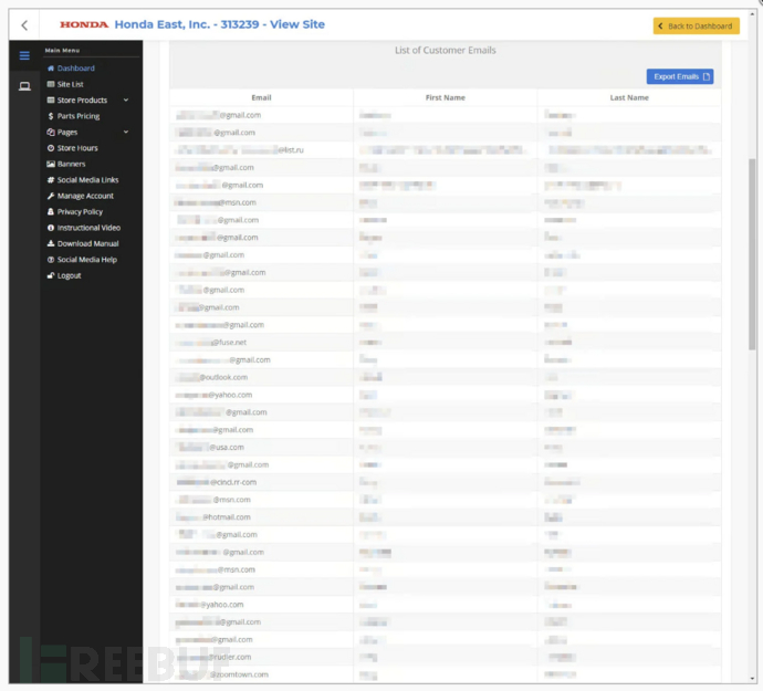 从2016年8月到2023年3月,所有经销商的21393个客户订单,其中包括客户姓名、免费信息发布网地址、电话号码和订购的商品1570个经销商网站(其中1091个是活跃的),所有站点均可被修改3588个经销商用户/账户(包括姓名、电子邮件地址),任意用户密码均可被修改1090封经销商电子邮件(包括姓名)11034封客户邮件(包括名字和姓氏)Stripe、PayPal和Authorize.net提供的私钥。内部财务报告