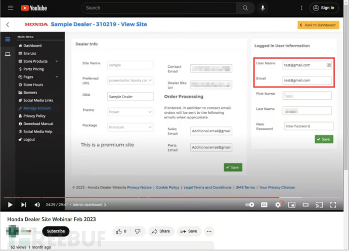唯一缺失的站群服务器部分是拥有一个属于经销商的有效电子邮件地址,研究人员从YouTube视频中获取了该电子邮件地址,该视频展示了使用测试帐户的经销商面板。