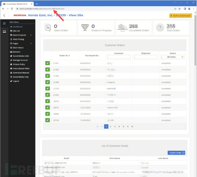 值得注意的是,本田的注册经销商可能会利用上述漏洞访问其他经销商的面板,进而访问他们的订单、客户详细信息等。最后一步就是访问本田的管理面板,因为这是该公司电子商务平台的中央控制点。