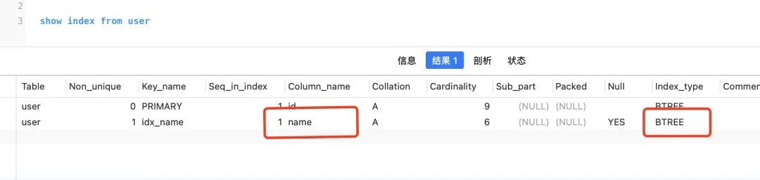 对name字段建立Hash索引,但是盘点通过show index from 表名就会发现实际还是B+树