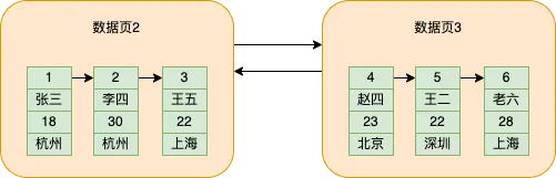 mysql为了区分每个页,会为每个数据页分配一个页号,存在额外信息的存储空间中,同时额外信息还会存储当前数据页的前一个和后一个数据页的位置,从而形成数据页之间的双向链表。