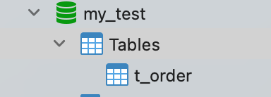 比如,我这里有一个名为 my_test 的 database,该 database 里有一张名为 t_order 数据库表。