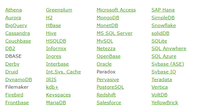 RazorSQL 支持40 多个数据库,据库可以通过 JDBC或ODBC连接到数据库: